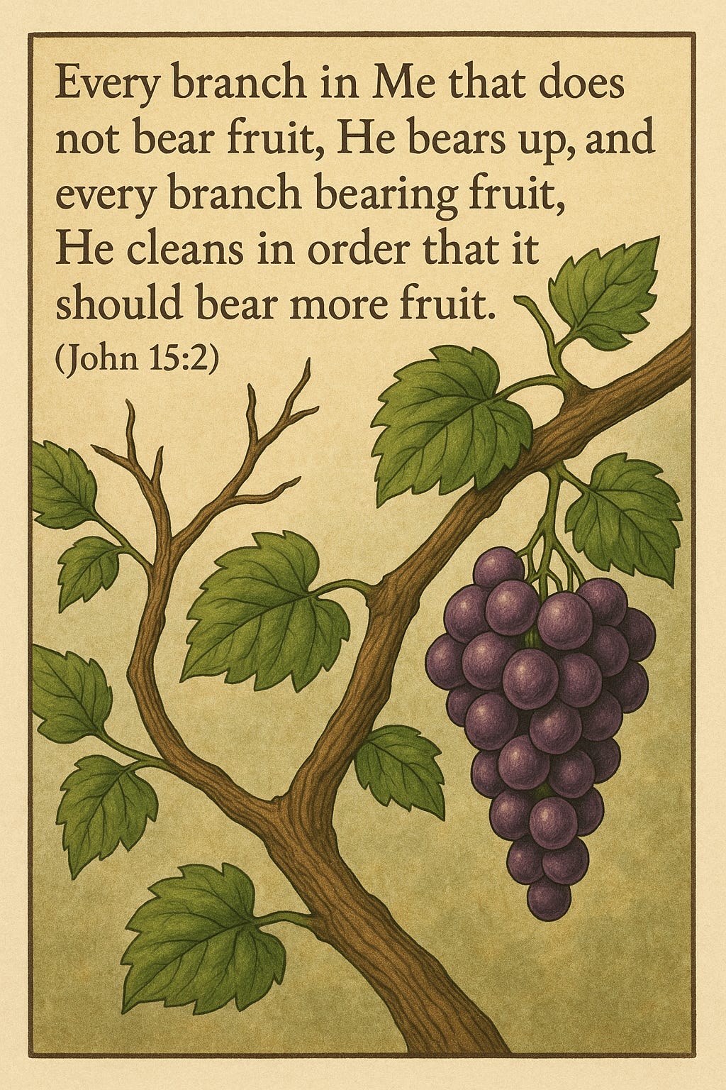 Every branch in me that does not bear fruit, He bears up, and every branch bearing fruit, He cleans in order that it should bear more fruit (John 15:2)